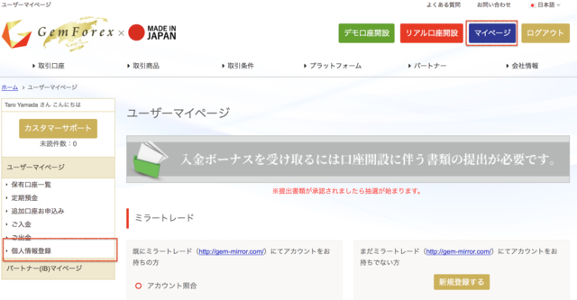 GEM FOREXは、口座開設時に個人情報の入力や身分証明書のアップロードなどを登録後に行うクィック口座開設を採用しています。