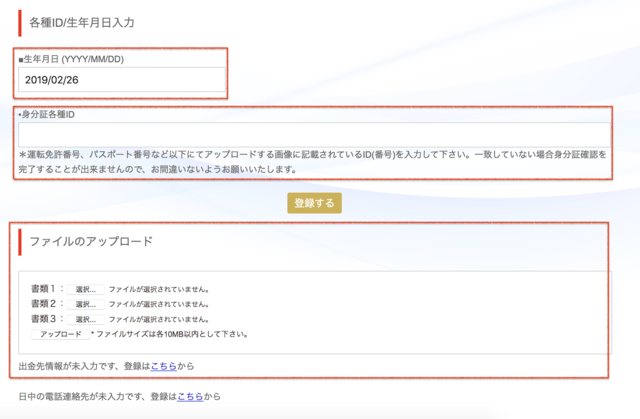 次にファイルのアップロードから本人確認資料をアップロードします。