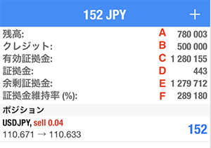 C.有効証拠金:トレードに使える証拠金の総額です。(残高+クレジット+現在の収支)