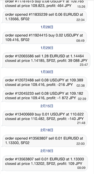 例:order opened #11835239 sell 0.06 EURUSD at 1.13566, SF02